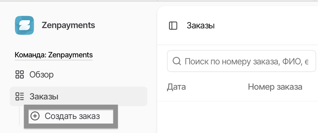 Для создания заказа необходимо перейти в раздел «Заказы» и нажать «Создать заказ».