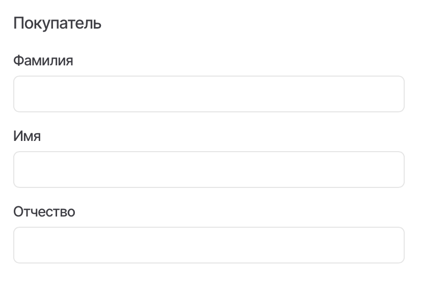 В данном пункте при необходимости можно заполнить ФИО покупателя. Поля «Фамилия», «Имя», «Отчество» не являются обязательными для заполнения.