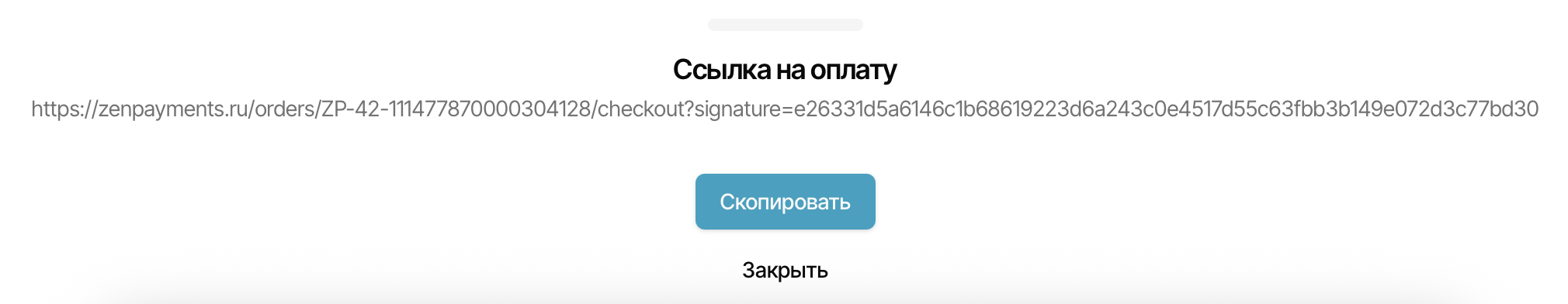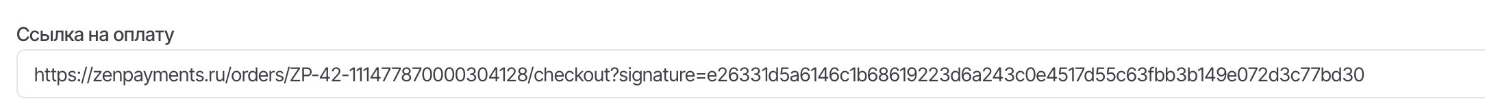 После сохранения заказа внизу страницы появится ссылка на оплату, которую можно скопировать сразу.