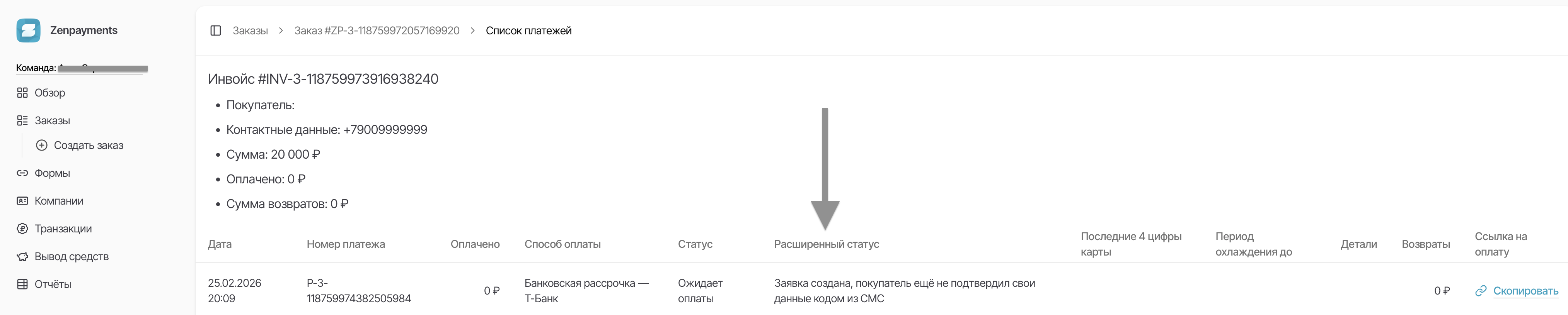Заявка создана, покупатель еще не подтвердил свои данные кодом из СМС |