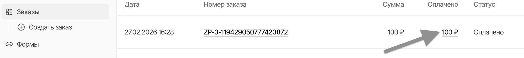 Для проведения возврата по платежу, который прошел через эквайринг необходимо перейти в раздел «Заказы», найти нужный платеж и нажать на цифру в столбце «Оплачено».
